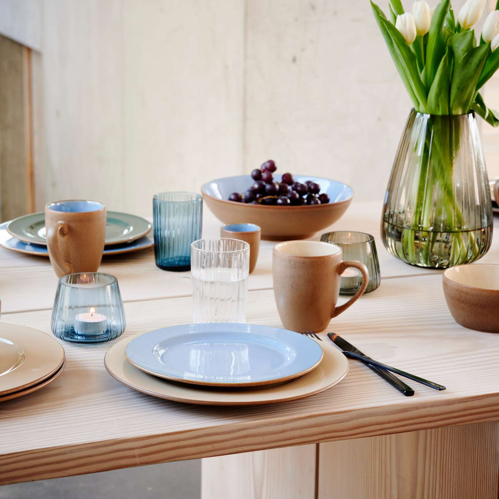 Developed in close collaboration with Christian Bitz, the BITZ range consists of sturdy stoneware in shades of green, gray and black, cutlery in black, brass and matte steel, a beautiful bone china series, carafes, wine and water glasses made of eco-crystal and other products for food, kitchen and health.